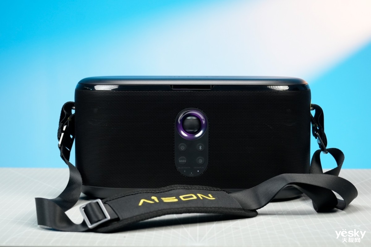 音箱实测重量为5.3kg,整体较为轻巧,配有的可调节的背带设计,可如同小背包一样方便携带出门,单手提举起来也不吃力。
