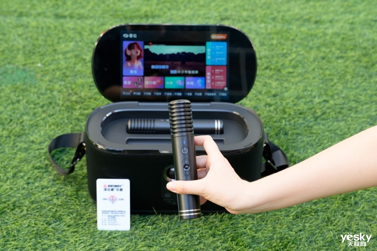 爱畅K50音箱还配有10.1英寸多点触摸IPS全贴合屏,画面清晰,拥有更广的可视角度,且触控操作非常灵敏流畅,同时屏幕也支持120°多角度任意悬停,可自由调整最佳观看角度。