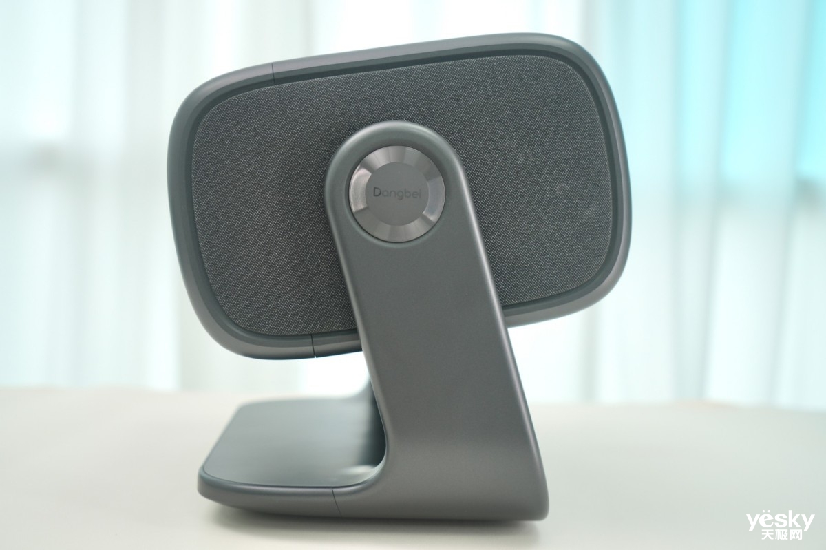 最后是云台底座细节,淡金色的当贝Logo位于云台底座正中间,底部则有可以360°旋转的底盘,轻松摆动就能旋转到用户想看的方向,使用起来完全不需要花费力气就能转动,非常便捷。