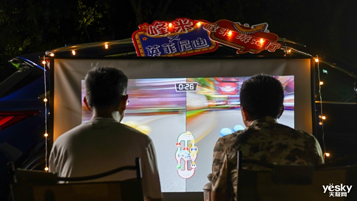 入夜后,各式娱乐装备有了更广阔的发挥空间,英菲尼迪QX50、两款峰米智能投影、雷鸟Air眼镜、Switch游戏机等组成了潮玩青年的户外游戏空间,只需进行简单的连接操作,就能与小伙伴共享近乎室内客厅电视的大屏游戏体验。