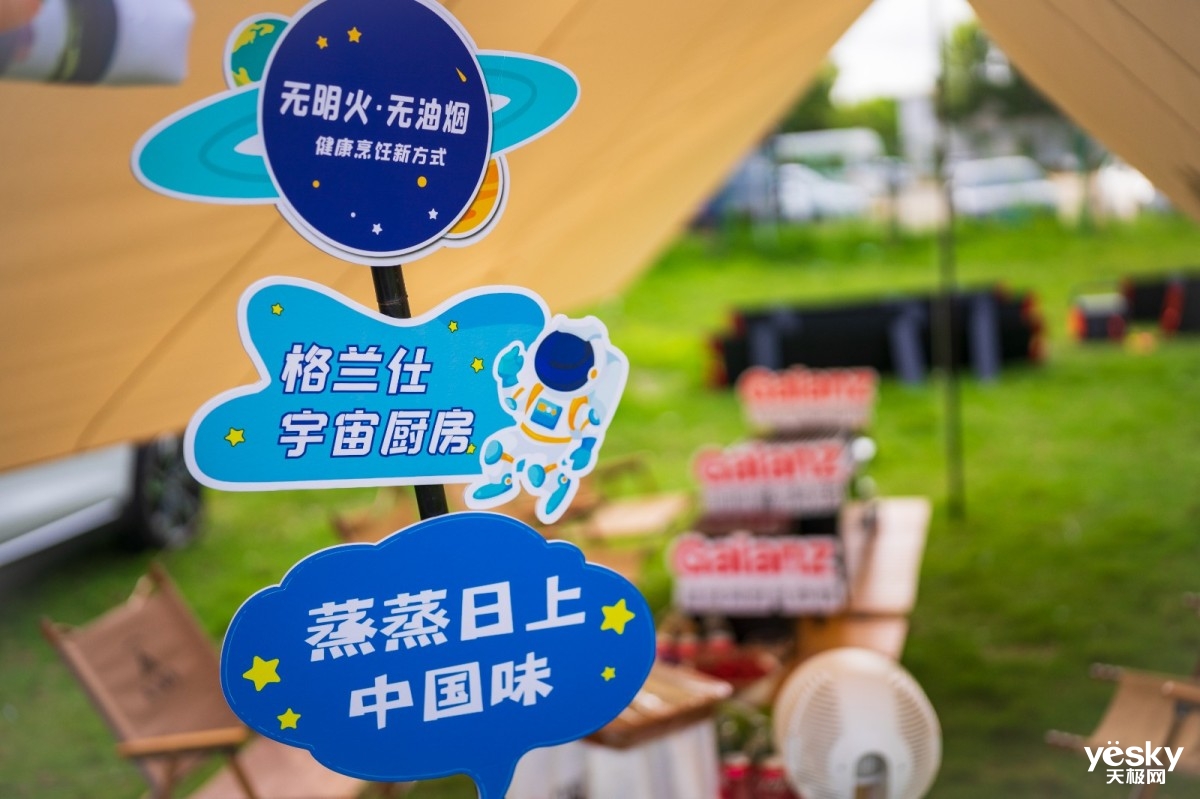 为了打造真正的科技露营地,我们在各类科技产品、物资方面做了全面准备。依托创维EV6、英菲尼迪QX50两台车辆搭设好帐篷天幕后,搭配太阳能电板的电小二户外电源与创维EV6、场地提供的电源共同构成了科技露营的“血液”,为我们携带的所有照明、厨电和娱乐设备供电。说到厨电,最大的帐篷天幕就作为我们的“露营美食屋”,集中了来自格兰仕的空气炸锅、蒸烤箱、咖啡机三款产品,在“大厨”的辛勤工作下为我们持续提供着各种轻食和饮品。
