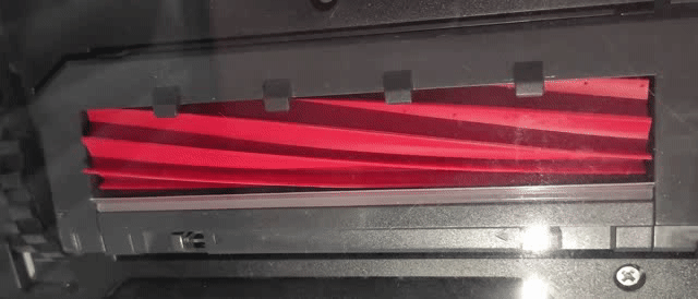??往下是石头G10?Plus的中央滚刷区域,采用全向浮动以及四连杆悬挂设计,在清扫过程中可随地面路况3D灵活浮动,让主刷更加贴合地面,静风压更强,带来更彻底的清扫效果。此外,全面采用TPU软胶材质的新一代主刷,配合阿基米德螺旋设计,在清扫时毛发能够沿着主刷上的螺旋纹理移动,解决了以往胶毛一体的主刷容易缠绕毛发的问题。而主刷在遇到积木、纸团、塑料袋等异物而被卡住时,它还会自动尝试反转,吐出异物,进一步防止卡困。