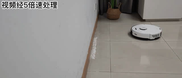 ??随后我们在墙边位置倾倒面粉,测试石头G10?Plus对墙边位置的清扫能力。清扫过程中,墙边位置的面粉快速被聚拢,几个来回就基本将面粉吸净。