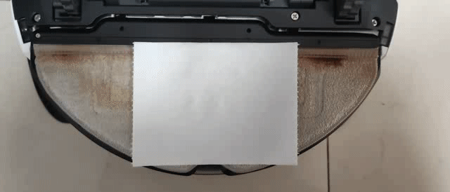 ??随后我们操控石头G10?Plus返回基站进行拖布自清洁,在此前我们先记录拖布的脏污情况。拖布自清洁和基站自清洁同步进行。,们观察石头G10?Plus的拖布自清洁情况,可以看到此前拖地测试中残留在拖布上的污渍基本上被清洗掉,基站内除了未风干的水渍以外也没有其他异物残留。