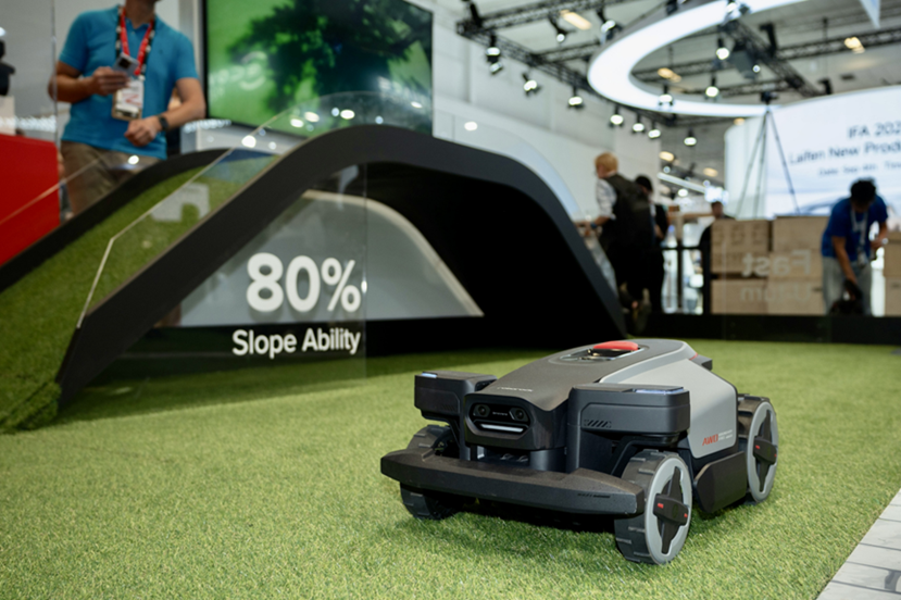 在户外区域,智能割草机RockMow Z1成为欧洲观众的关注焦点。该产品采用四轮独立驱动系统,可应对80%的陡坡地形,其创新的全轮悬挂设计能够自动调节离地间隙,确保刀盘在复杂地形中始终保持最佳工作状态。搭载的Sentisphere™ AI环境感知系统能精准识别边界线并避开障碍物。石头将扫地机积累的导航算法、避障技术平移至割草机领域,实现了技术能力的跨界复用。