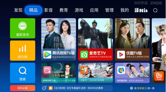 ??最后一步在当贝市场中搜索载哔哩哔哩TV版,即可在今天的20:00观看此次晚会的直播啦。除此以外,当贝市场是一款专为大屏打造的应用类商店,里面包含了直播、点播工具、学习、健身等海量应用软件,是目前市面上最全面的电视应用商店。里面有超详细的应用分类,给用户提供专题推荐,大家如果还想下载什么各类大屏软件的话,都可以在此中下载哟!