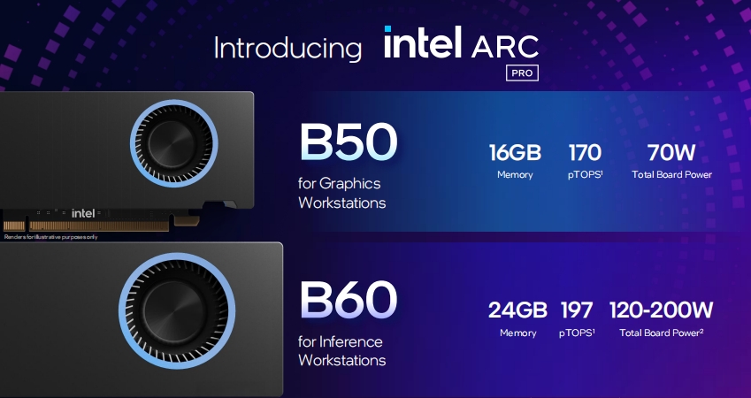 为AI推理和专业工作站量身定制 英特尔发布锐炫Pro B60/B50专业显卡