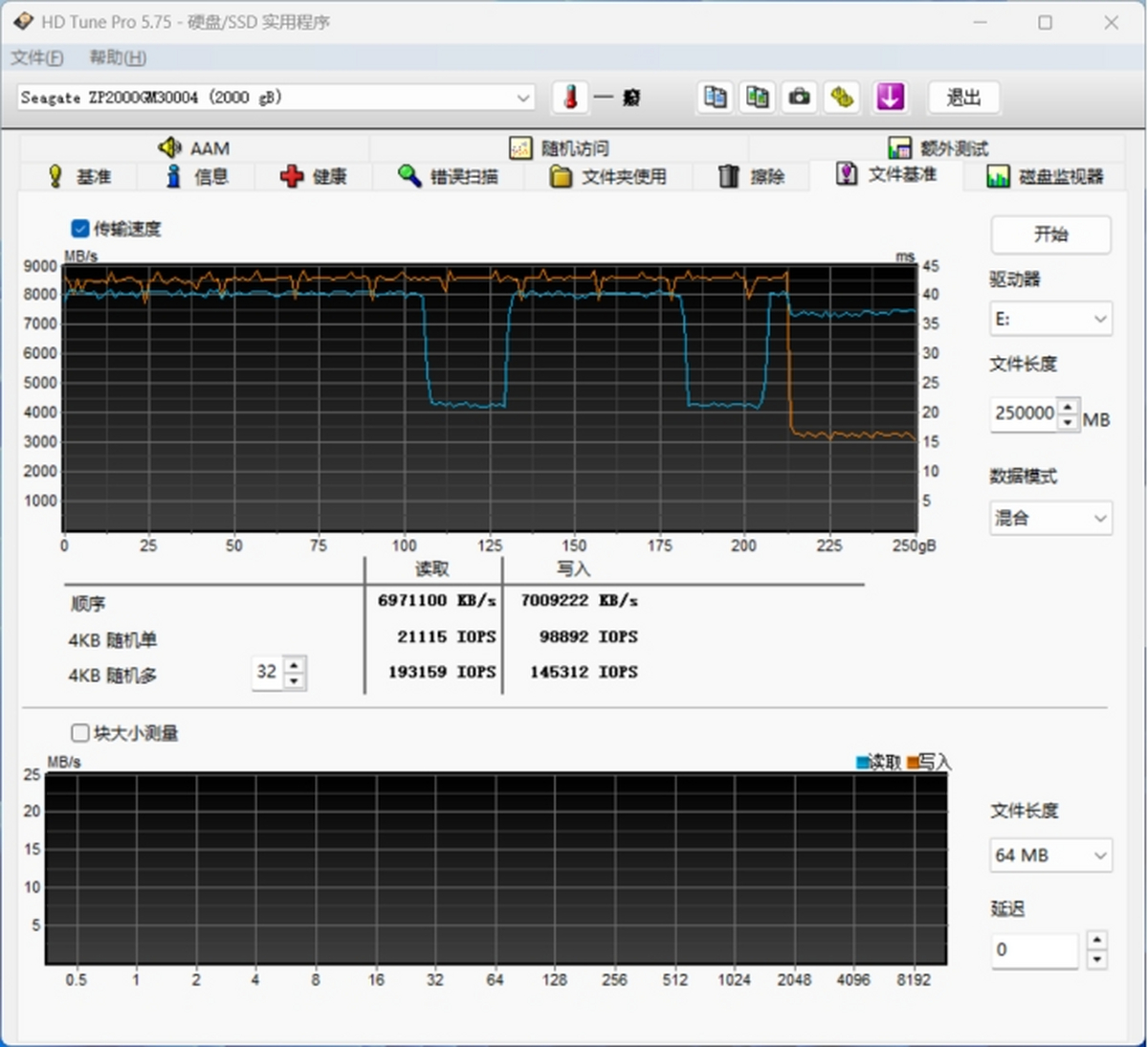 读取方面,在维持8GB/s的读速一段时间后,酷玩540经过了两段波动降速控温过程,随后速度稳定在7GB/s。
