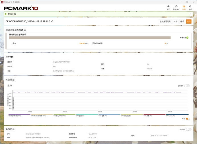 此外我们还对酷玩540进行了PC Mark10测试。在完整系统盘基准测试中,酷玩540得分5328,带宽839.49MB/s,平均存取时间31μs;此外,在快速系统盘基准测试中,其得分进一步提升至6982,平均存取时间低至18μs。