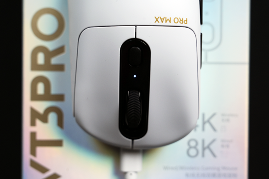 VT3PRO和VT3PRO MAX使用相同的模具,外观唯一区别在于VT3PRO MAX在鼠标左键下方印出PRO MAX字样,而VT3PRO则不印出型号。产品尺寸为123*66*42mm,标准的中大手鼠标。产品有无极和幽魂两种配色,这次为大家评测的是无极配色。鼠标整体采用黑白撞色设计,颇有太极阴阳之道的感觉。