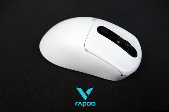 鼠标尾部有一个内凹抛光的雷柏LOGO。