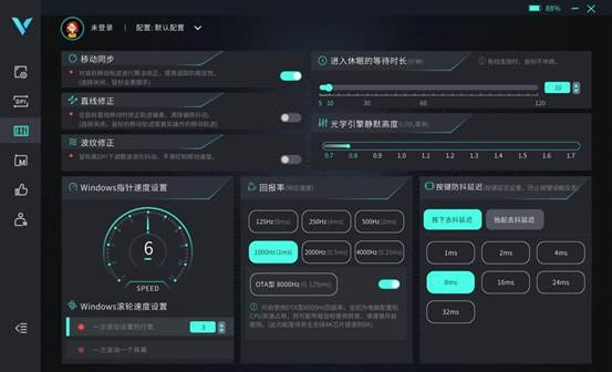 此外鼠标还支持X/Y轴DPI独立调节,玩FPS游戏的朋友就可以利用这项功能将Y轴灵敏度调低,实现稳定的压枪,而横移瞄准的操作则不受影响。LOD 0.7-1.7mm 11档静默高度可调,LOD主要的作用就是减少将鼠标抬起移动而失去捕捉的情况,玩游戏时激烈的操作会令鼠标一直保持在移动的状态,大范围的移动有可能会使普通鼠标出现“丢帧”,调整更高的LOD则可以避免这个情况,即便在移动过程中鼠标稍稍离开鼠标垫,强大的光学引擎还是能够精准捕捉移动,从而保证我们在游戏中的稳定操作。VT3PRO配置原相3398定制光学引擎(3395高定版),拥有650IPS追踪速度、50G加速度,LOD 1-2mm 11档静默高度可调,原生50-30000DPI,支持以50为单位逐级调节,同样支持X/Y轴DPI独立调节。