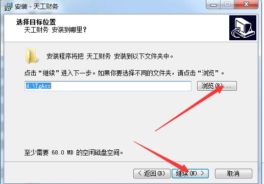 2、选择目标位置,默认在d盘,也可以点浏览选择其他盘,点继续