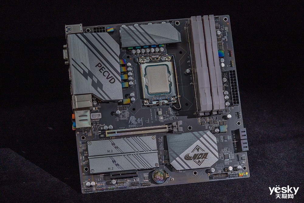 更换全新的LGA 1700接口,意味着主板也要同步跟进,跟随首批12代酷睿一同上市的Z690芯片组也与12代酷睿一同上市。笔者在本周拿到昂达送测的昂达Z690魔剑版,采用M-ATX版型设计,10相数字供电、PECVD镀膜工艺等。