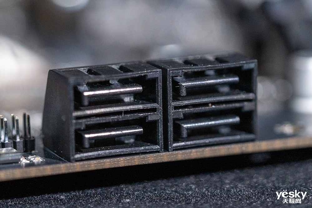 存储支持方面,昂达Z690魔剑版提供四条DDR4内存插槽,在DDR5内存价格高企的情况下,选择DDR4内存是当下最明智的选择。昂达为内存插槽提供金属加固,提高内存使用时的稳定性。主板提供两条M.2 2280的NVMe固态硬盘接口,两个M.2接口位于第一条PCIe插槽下方。一体式的散热器能够轻松应对PCIe 4.0固态硬盘的发热。此外,主板同时提供4个SATA 3的硬盘接口,为用户提供丰富的扩展性能。