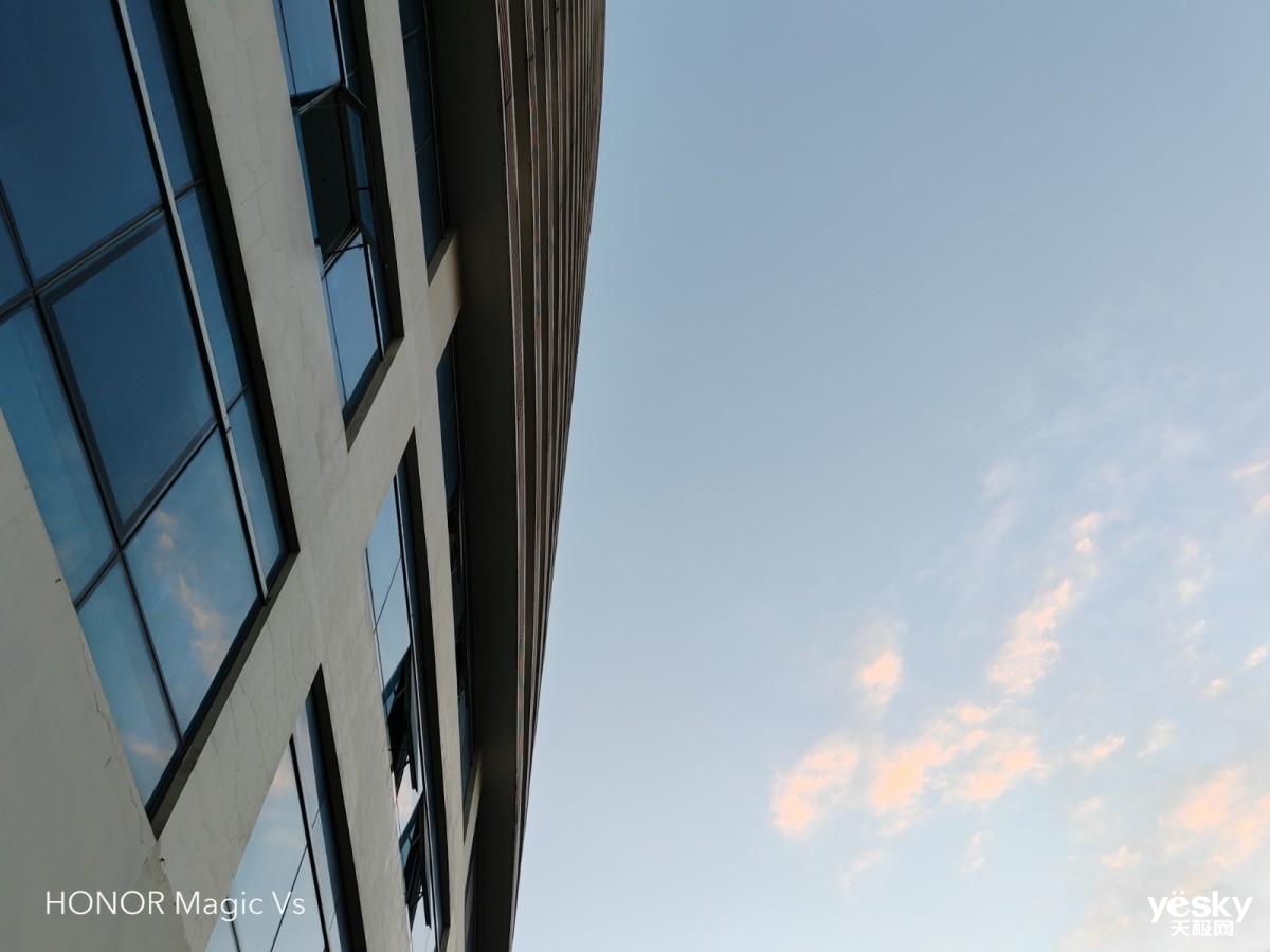 实际样张表现色彩自然、干净通透,逆光拍摄也无所畏惧,像是建筑、树木、花朵等景物贴近肉眼真实所见,颜色饱满,宽容度十足,保留了大量彩云细节和本来应该化为剪影的建筑细节。夜景拍摄也是非常不错,对光的控制比较到位,高光压得住,画面也比较纯净,亮部暗部细节保留到位;人像模式虚化自然,脸部红润自然,人像边缘细节处理得当,精准到发丝,虚化层次分明;前置拍摄表现出色,美颜模式提供“光滑”、“瘦脸”和“肤色”,同样可以前置虚化,氛围感不错。整体来看,荣耀Magic Vs提供稳定拍摄表现,综合表现可圈可点。
