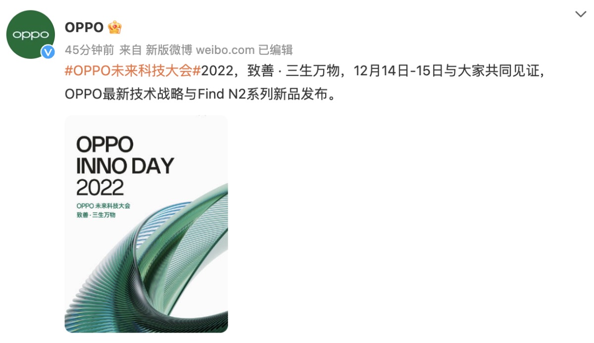 OPPO未来科技大会2022官宣定档 Find N2系列折叠旗舰将至