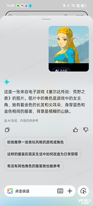 除此之外,还有比如在阅读文章、阅读资讯过程中,想要知道配图中的名人、艺术画作、动物的品种,将原本需要调研资料的内容的步骤:退出APP——打开搜索引擎——输入内容或者图片,简化在一键问屏功能中,一句话就搞定。