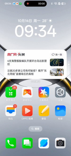 首先我们来谈一谈最直观的动画效果,ColorOS 15利用极光引擎,系统级渲染与绘制架构,突破安卓限制,行业首发并行绘制架构,将传统安卓单线程串行架构改为多线程并行架构,解决因资源冲突而造成的画面闪跳卡顿,做到并行响应统一绘制,点击极速响应,画面丝滑连贯。