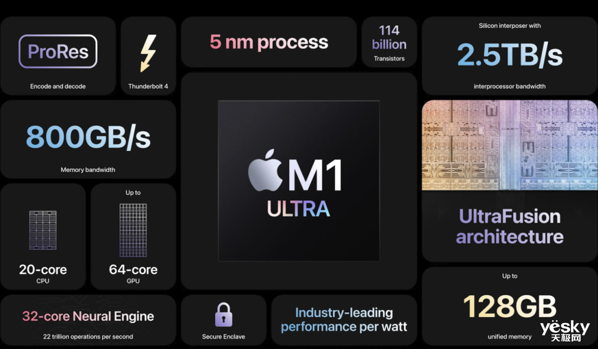 苹果将GPU、CPU、统一内存以及大量专用加速模块都塞进了M系列芯片中,如此一来就为苹果M系列芯片带来两个好处,首先是高度集成的设计使得芯片在内存传输方面占据巨大优势,使得骑在内存传输方面相比原先的英特尔平台拥有超过10倍的速率提升。