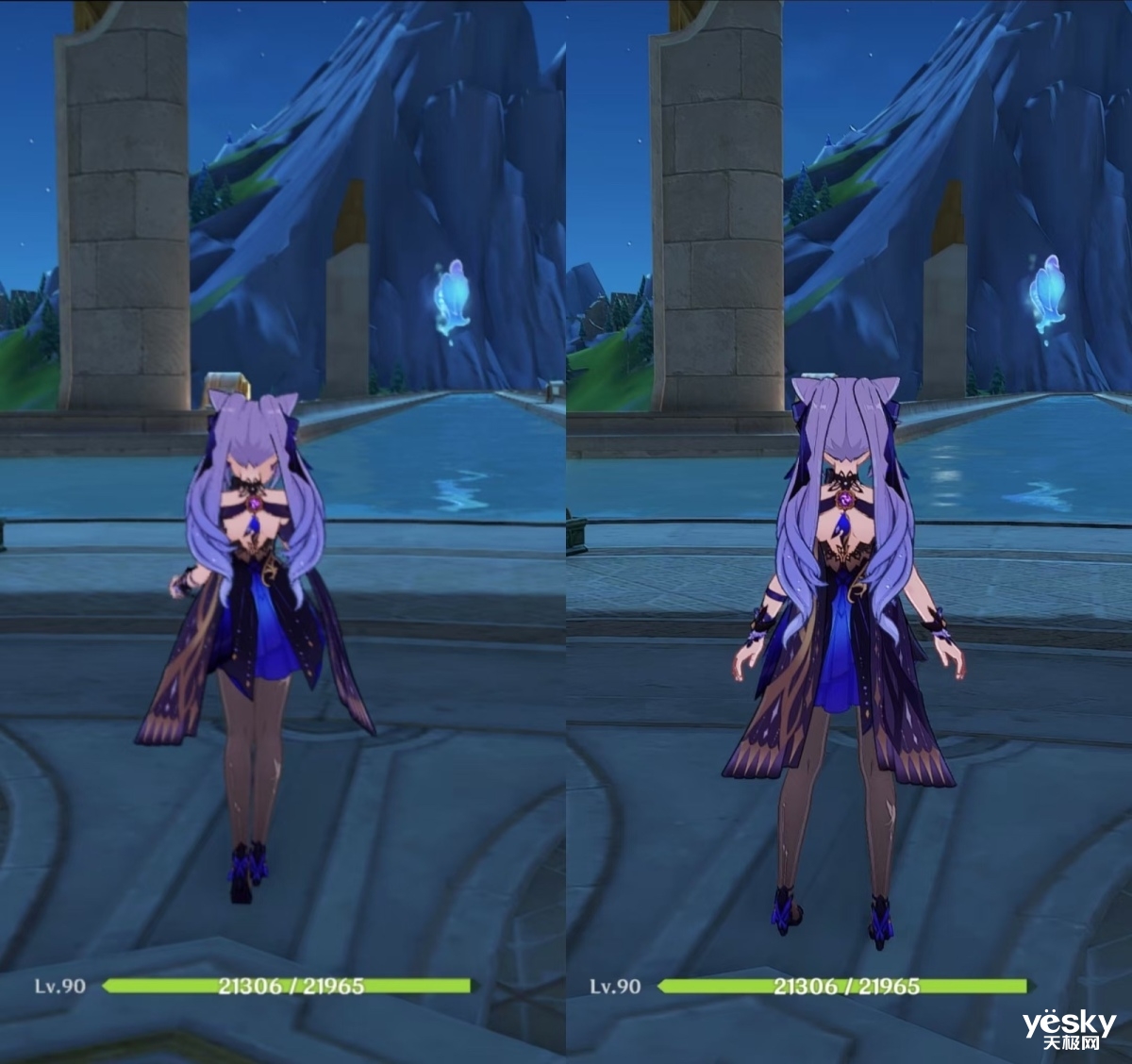 iQOO 13采用的第三代超分技术在前两代的基础上,超分水平更上一层楼。iQOO第三代超分技术将通过处理通纹理贴图、网格模型、纹理映射、光栅化等多个流程,极大改善游戏画面本体素材,甚至媲美PC纹理的画质体验。将对照图放大可以清楚的看出,在原神场景中墙壁贴图细节更加丰富,人物角色上的毛发贴图质量得到稳定提升。