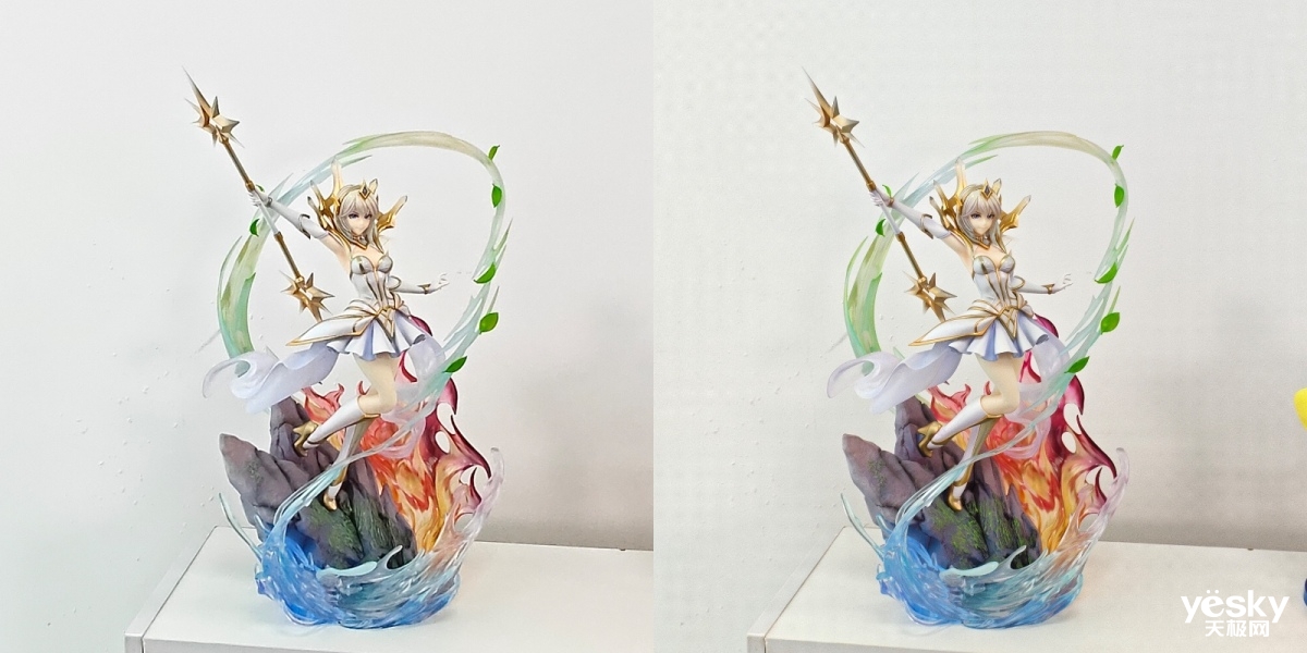 除了有着新一代骁龙8至尊版的加持,时隔近一年后,为满足酷客对于电竞游戏极致追求, iQOO团队不断对芯片设计和自研算法进行优化打磨,带来了全新一代iQOO自研电竞芯片——Q2,这一代新的Q2电竞芯片带来了更高能效算力,解决了插帧功能在画质、时延、功耗等方面的行业难题,做到行业最好插帧体验。iQOO13通过超分或者插帧技术,全面优化游戏画质体验和帧率表现,让iQOO13释放出更强游戏画面表现和更高更稳定的游戏帧率,比如原神等头部大作可以通过超分技术提升到2K画质水准,达到甚至比肩桌面级别的画质,画质对比如下: