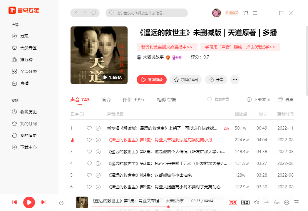 好的带感情的真人朗读听书软件推荐大家使用喜马拉雅,它不仅是一款听书工具,更是一款拥有海量资源、真人朗读的听书神器,不管是热播电视剧的有声解读,还是真人朗读的文学名著等等,大家都可以通过喜马拉雅来收听。