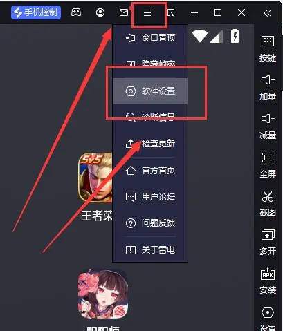 1、如果出现卡顿和闪退,我们可以在雷电模拟器的菜单栏中进入“软件设置”功能。?