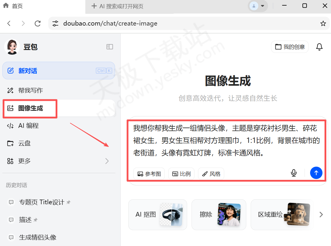 3.稍等片刻,豆包会根据提示生成情侣头像。