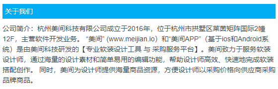 pc美间是由2016年创立的杭州美间科技有限公司所开发的,美间科技旗下的美间网(www.meijian.io)、美间APP以及pc美间是由美间团队设计并研发的面向软装设计师的专业应用。