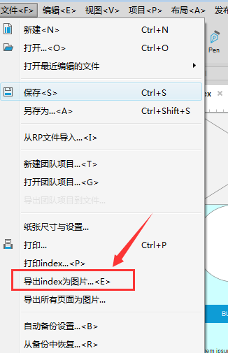 ?如图,在当前文件下点击菜单栏的文件——导出index为图片,我这里是index页面,所以显示Index;如果你在其他页面中导出,就会显示当前的选项设置栏,?