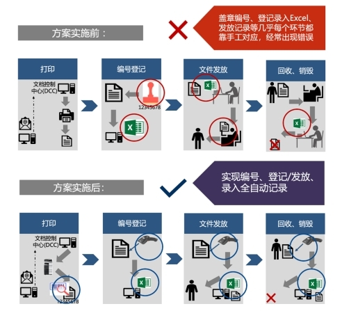 ICW的数字化管理同样适用于高端精密制造企业。以某大型代工制造商为例,因其特殊工作属性,该企业拥有设计图纸、工艺文件等诸多保密技术文档。如未达到保密要求,则将涉及面临高额罚金、订单削减等后果。为保证文档的绝对机密,该企业投入大量人力与时间进行文档维护和管理。但仅依靠传统的人力,难以严密地管控如此庞大复杂的文档数据,有时还会出现手工输入错误,由此该企业向柯尼卡美能达寻求解决方案。
