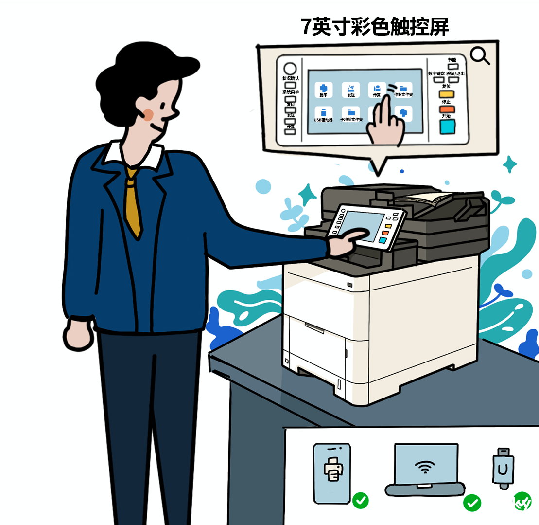 打印机的操作也是困扰企业员工的痛点,为解决此类难题京瓷ECOSYS MA3500cifx带来一系列易用性提升。机身正面标配7英寸的彩色触摸屏,界面简洁、直观,更符合当下用户的操作习惯,搭配快捷实体按键,高效找到所需功能或者调整打印设置,打印新手小白也能轻松上手,避免不熟悉设备导致身后排起打印长队,尴尬地承受汗流浃背。