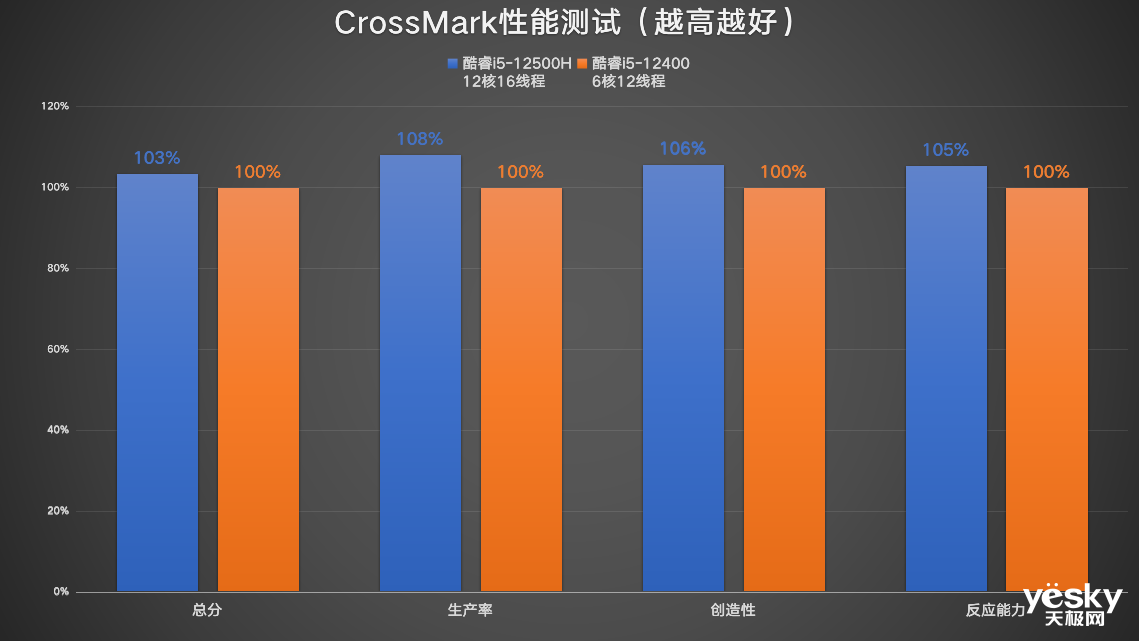 以CrossMark为例,对比搭载酷睿i5-12400处理器的台式机,联想ThinkCentre neo S760综合成绩领先约3%,生产率提升约8%,反应能力提升约5%。