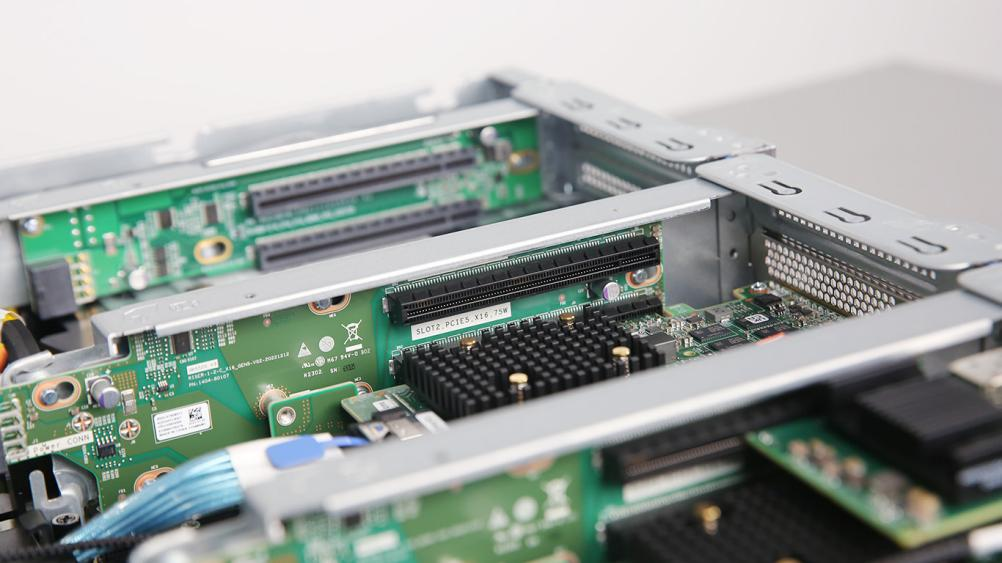 本次送测的样机在扩展区加装了1块940-8i 4GB Flash PCIe Gen4 12Gb RAID卡——支持RAID0、1、10、5、50、6、60等多种存储方案。另外,还有一块Mellanox ConnectX-6 Lx 10/25GbE SFP28 2-Port PCIe网卡,并可扩展两个OCP 3.0网卡,为数据库、云计算、虚拟化、AI等业务,或搭建超融合方案提供高带宽、快速稳定网络支持。如果业务需要将服务器部署为全闪存,那么配合上高频DDR5内存、高性能网卡,系统的I/O性能将相当出色。