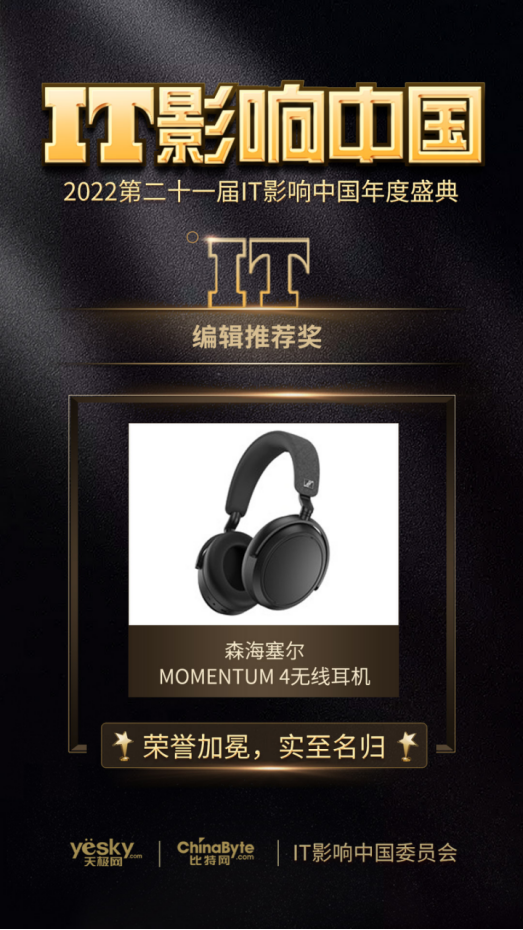 IT影响中国2022:森海塞尔MOMENTUM 4无线耳机获年度编辑推荐奖