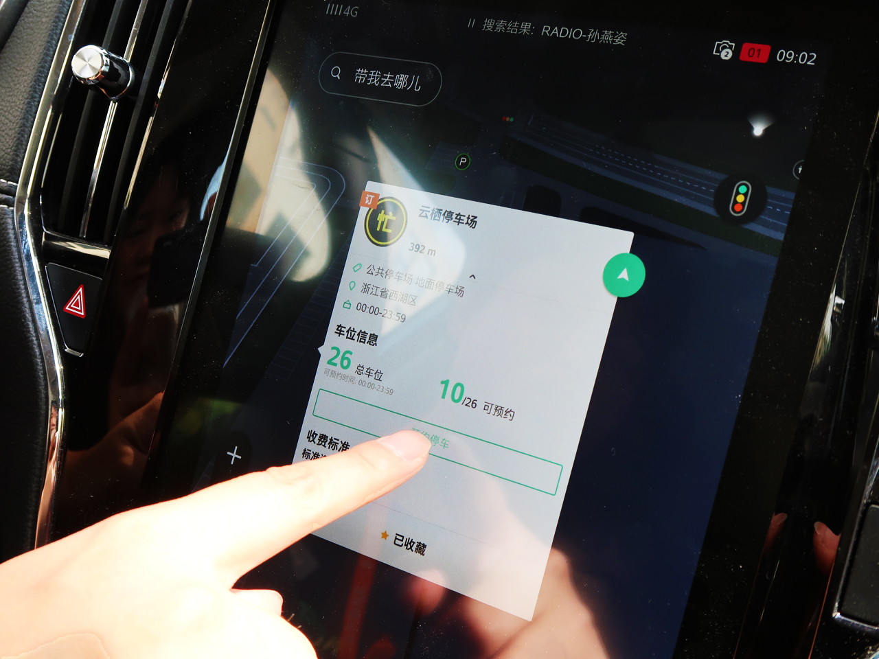 ??至此,整个试乘差不多也要结束了,返回途中,笔者又让驾驶员演示了一下我们出发开出停车场时提到的自助停车、自动缴费功能。在汽车触控屏上,试驾员通过地图功能开始寻找附近停车场,系统不仅会告诉你离你最近的停车场,还会显示这个停车场的停车位信息,是满员还是有多少个停车位都可以一目了然,这时,点击预约停车位,系统便会自动调出一个页面,里面你汽车的基本信息也是系统调出来的,不需要手动再输入,你只要选择停车的时间即可。