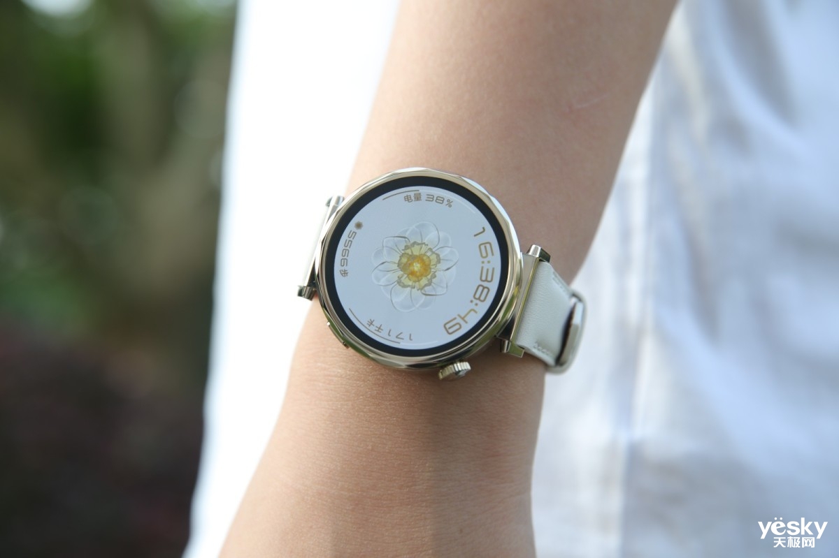 这次的华为WATCH GT 5系列采用了几何锋芒设计理念,在表身边缘有棱角分明的切割设计,数字系列46mm大表看上去更加阳刚一些,符合“八边形战士”的理念,而数字系列41mm小表会显得更加精致,相较于上一代产品,新的金叶切边设计带来更闪耀的光芒,即“耀目小光环”,很好地对应了面向的用户群体,满足不同用户的个性化需求。