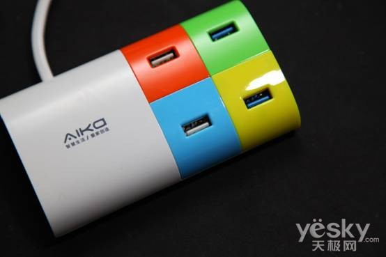因为已经迫不及待的使用过了,所以包装已经被我扔掉了。AIKA爱家牛X 智能插排的外观就是这个样子,白色的左半部分搭配了像魔方一样颜色的右半部分。细心的朋友可能已经看到了这些颜色分别对应了四个usb接口,两个白色接口,两个蓝色接口。一般情况下我们认为白色的是usb2.0,蓝色的是usb3.0,当然这里应该是简化了数据传输触电,所以我们可以无视掉这些。